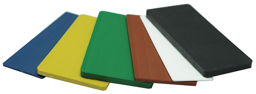 Produkowane  podkładki wykonane są z polipropylenu w różnych kolorach. Odpowiedni kolor oznacza konkretną grubość podkładki.