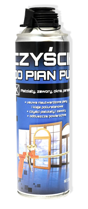 Profesjonalny preparat do czyszczenia świeżo zabrudzonych powierzchni z piany i klejów poliuretanowych/ pistolety, zawory, okna, parapety. Bardzo wydajny, czyści pozostałości z pianki i zapobiega zapchaniu się pistoletu. Oczyszcza i odtłuszcza powierzchnię. Najlepsze rezultaty można osiągnąć stosując go bezpośrednio po użyciu piany.